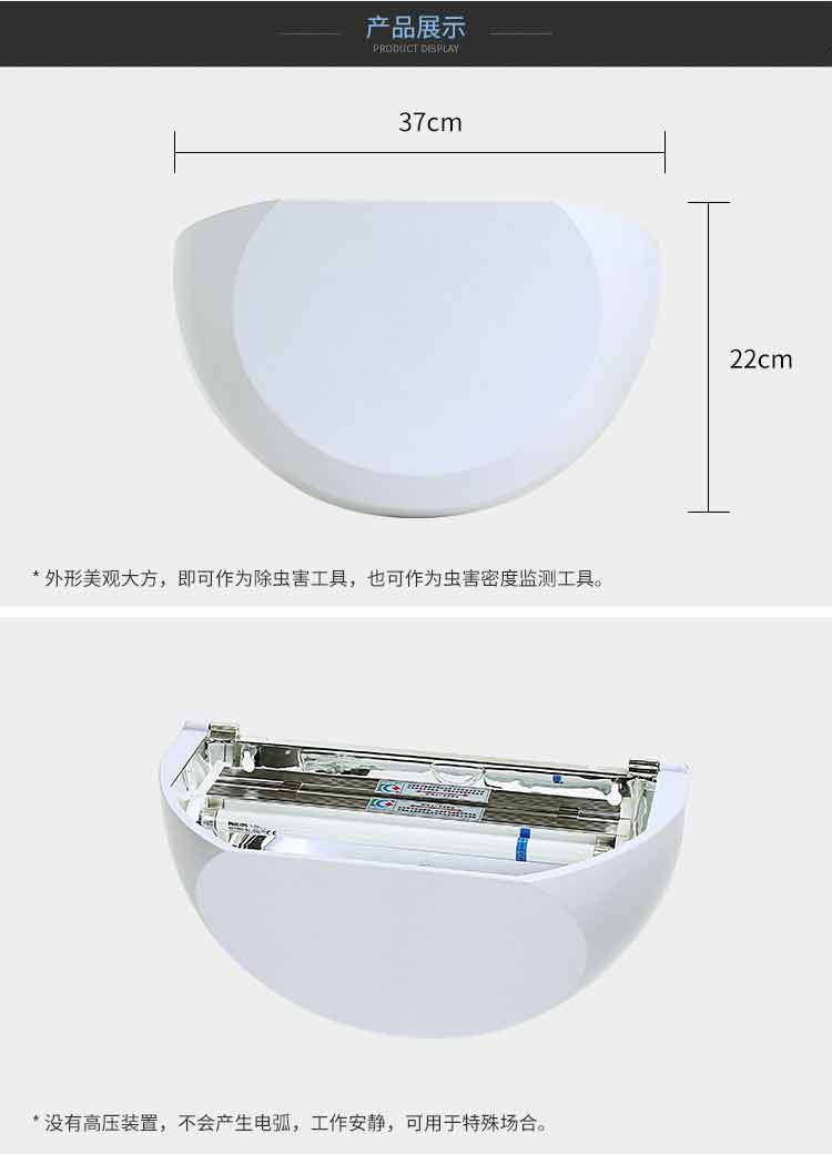 該燈顛覆了傳統(tǒng)格闌珊式電擊滅蠅燈高壓電流裝置,不產(chǎn)生電弧、火花,工作安靜外觀大方,捕蟲效果