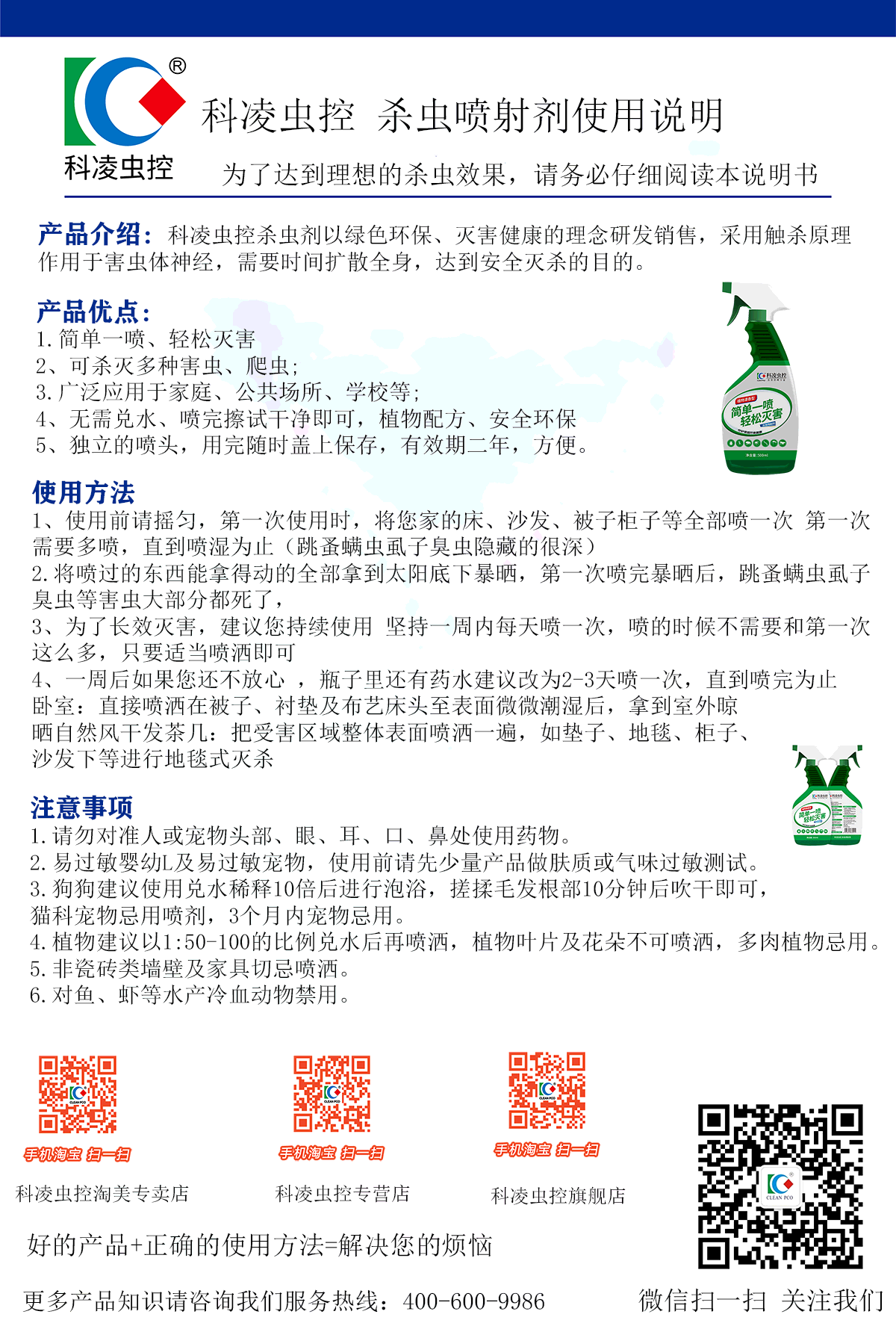 當(dāng)前位置:首頁(yè) > 新聞資訊 > 常見(jiàn)問(wèn)題 > 科凌蟲(chóng)控殺蟲(chóng)噴射劑使用說(shuō)明書(shū)及注意事項(xiàng)