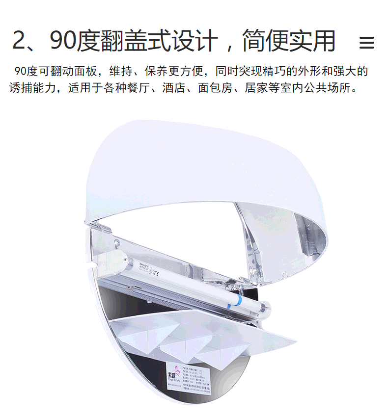 該燈顛覆了傳統(tǒng)格闌珊式電擊滅蠅燈高壓電流裝置,不產(chǎn)生電弧、火花,工作安靜外觀大方,捕蟲效果更出眾.