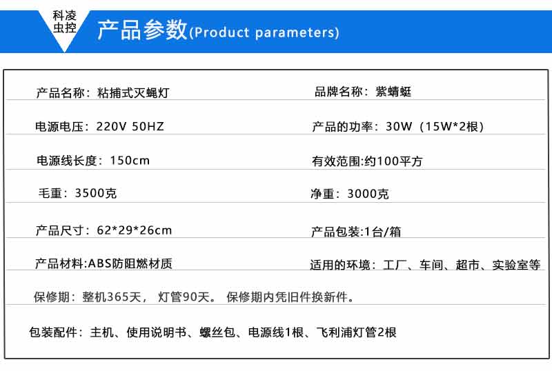 如果是餐廳、工廠等商用,建議使用科凌蟲控紫蝶紫蜻蜓滅蠅燈,可適用于餐廳、工廠,有效的解決蚊蠅的煩惱。