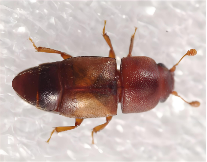 腹部末2節(jié)外露。 成蟲在倉內(nèi)縫隙,鋪墊物底下群集越冬。