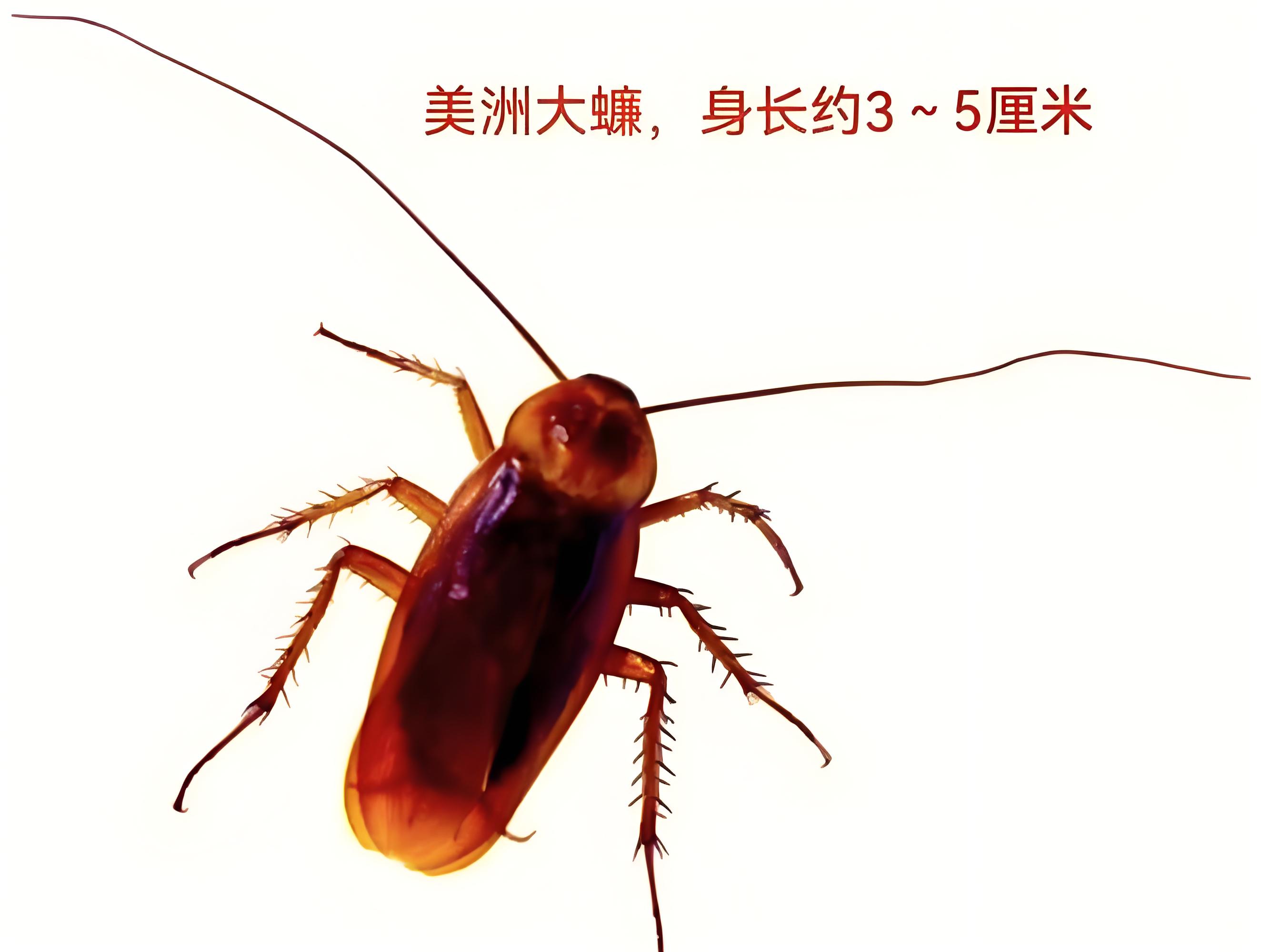 美洲大蠊Periplaneta americana Linnaeus 體長29~35毫米,紅褐色,翅長于腹部末端。觸角很長
