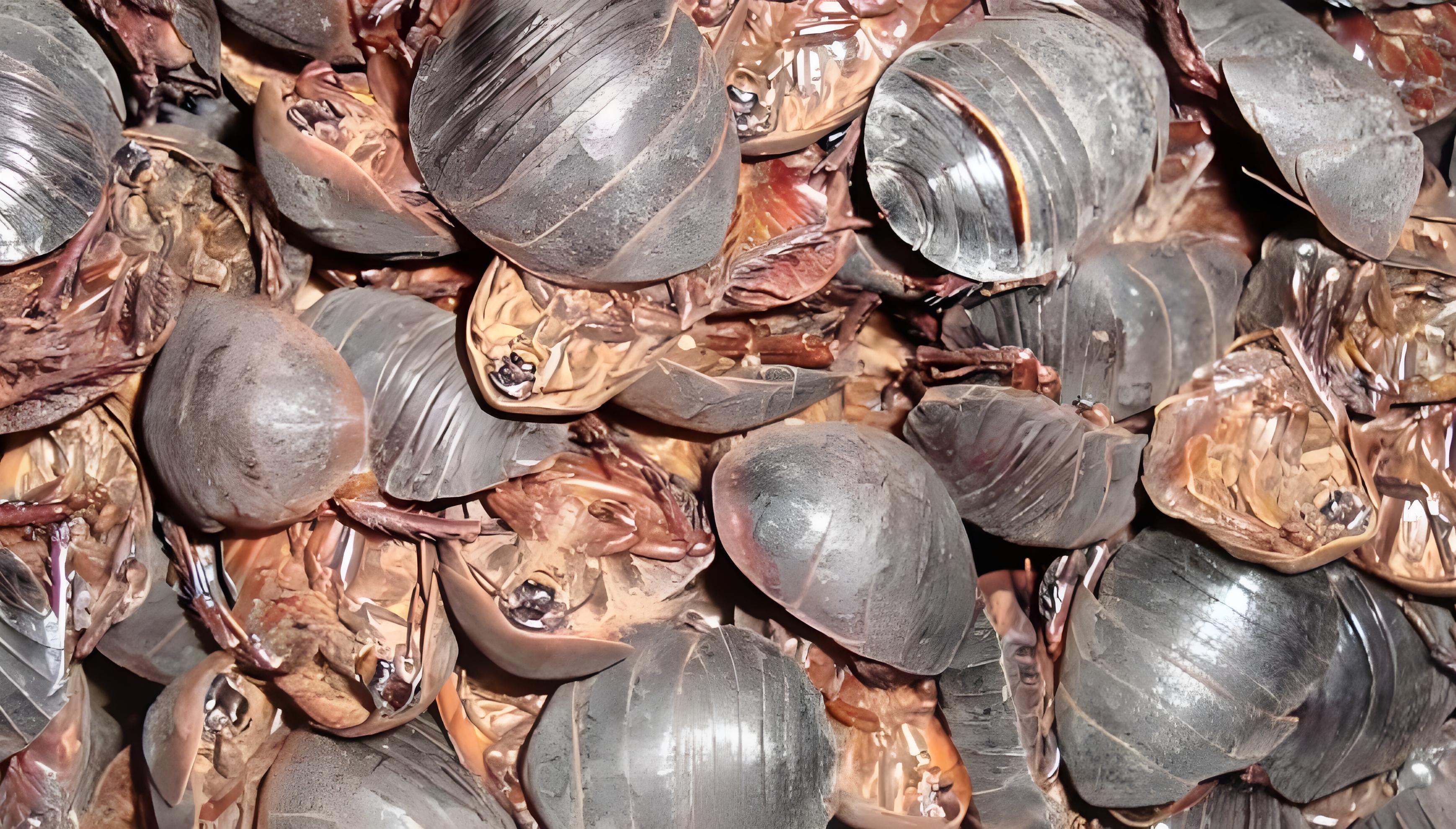 中華真地鱉Eupolyphaga sinensis(Walk.) 體長30~35毫米,體寬25~30毫米。背面赤褐色 至黑褐色,稍有灰藍色光澤。