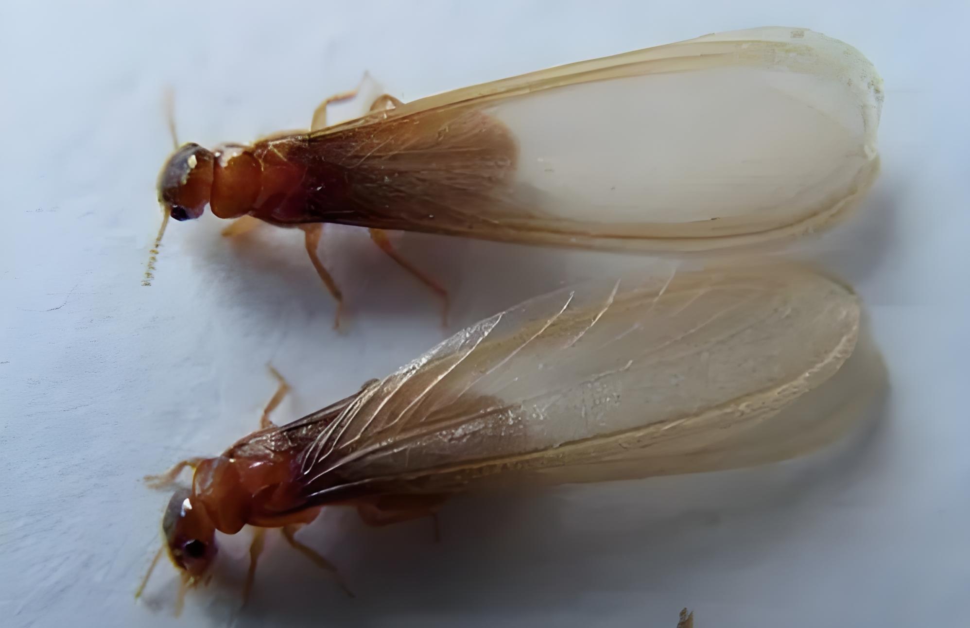 黃翅大白蟻Macrotermes barmey (Light,1924) 有翅成蟲體長14-16毫米,翅長24-26毫米, 體長連翅長28-30毫米,體背面栗褐色,足棕黃色,翅黃色。頭寬卵形,土棲46月凌晨2~5時(shí)分飛,分飛孔凹入地面。 危害堤壩,農(nóng)作物,樹林。